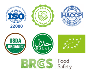 Our cashew kernels adhere to the strictest EU and US food safety regulations and ethical and sustainable sourcing standards, such as HACCP, BRC-GS, GFSI, FAIR TRADE, etc.